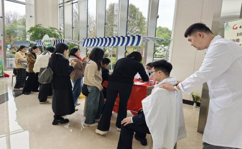 “中醫(yī)把脈”攤位致力于守護(hù)職場人群身心健康。攤位前,專業(yè)醫(yī)師現(xiàn)場為樓宇職工提供脈診咨詢、養(yǎng)生指導(dǎo)、肩頸放松等服務(wù),還針對性地為大家講解久坐護(hù)眼護(hù)腰、日常科學(xué)作息和有效瘦身減肥等健康知識(shí),受到了現(xiàn)場一眾企業(yè)年輕職工的熱烈歡迎。“公益宣傳”攤位,志愿者積極開展反詐、消防、法律等知識(shí)科普,全面提升群眾安全防范與法治意識(shí),筑牢安全防護(hù)網(wǎng)。