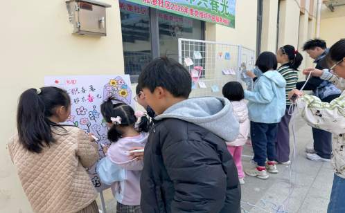 活動(dòng)還未開(kāi)始,居民們便被一面別致的簽到板留住了腳步。板上繪有形態(tài)各異的花朵輪廓,參與活動(dòng)的居民可以挑選自己喜愛(ài)的花朵,用彩色畫(huà)筆為其涂上鮮亮的春色。居民有的選擇了明艷的迎春黃,有的偏愛(ài)溫柔的櫻花粉,一筆一畫(huà)間寄托了對(duì)春天的美好期許。不多時(shí),原本素白的簽到板便化作一片絢麗的“花海”,成為活動(dòng)現(xiàn)場(chǎng)的第一道亮麗風(fēng)景。