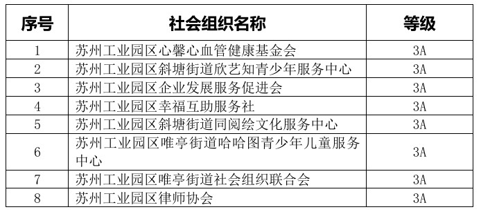 2025年度蘇州工業園區社會組織等級評估結果公示