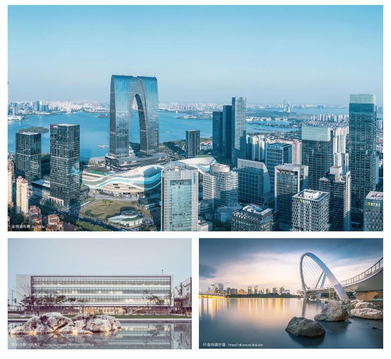 以金雞湖為核心展開,環(huán)金雞湖區(qū)域布局中央商務(wù)區(qū),構(gòu)成園區(qū)的城市級(jí)中心;圍繞80平方公里“中新合作區(qū)”,布局商務(wù)、科教創(chuàng)新、旅游度假、高端制造與國際貿(mào)易四大功能板塊,形成“產(chǎn)城融合、區(qū)域一體”的城市發(fā)展架構(gòu)。