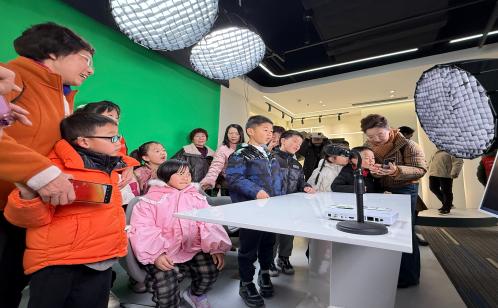 活動伊始,孩子們懷揣著好奇心來到廣電營業廳與高清電視實驗室。現代化的業務展示和清晰度對比鮮明的高清畫面,讓孩子們直觀感受到了科技給生活帶來的視覺變革。隨后,在主持人老師的帶領下,大家走進了夢寐以求的電視直播間。平時在屏幕上看到的主播臺、攝像機真實地呈現在眼前,孩子們興奮地輪流坐上主播臺,面對鏡頭體驗當“小主播”的感覺。緊接著,大家來到智慧家居體驗區,通過展示煙感探測器、跌倒檢測儀、互聯網云臺攝像機等智慧家居儀器,讓孩子們連連發出驚嘆,深刻體會到了“智慧廣電”正如何悄然改變著千家萬戶的生活方式。