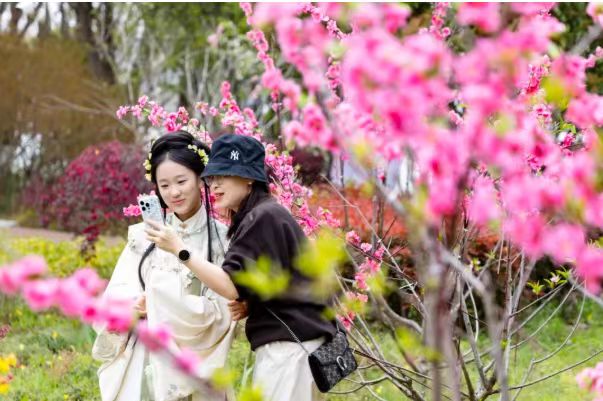 春日園區,是花的海洋。作為金雞湖唯一可登島嶼,桃花島2026金雞湖桃花文化季“‘趣’和春天約會”成為春假頂流。乘船登島,千株桃花灼灼盛放,“游戲引流+桃花幣激勵+多元體驗”玩法升級,百米“風車夢境”搖曳生姿,春日郵局、桃鈴風祈等藝術裝置錯落其間,游客漫步其中,步步皆景、幀幀出圈。萌寵樂園里,孩童與小羊、小馬親密互動,歡笑聲此起彼伏;水上運動、非遺手作、互動演繹輪番上演,“桃花島島主”沉浸式體驗讓家庭游客流連忘返。“特意帶孩子來桃花島,既能賞花又能互動,孩子開心、我們也放松,太愜意了!”來自浙江的游客李女士一家,在島上打卡拍照、體驗手作,度過了溫馨充實的一天。