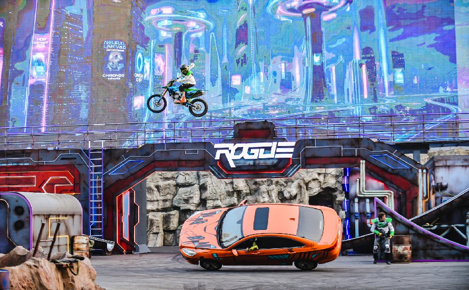 此次“賽博狂歡節”是樂園在大型節慶IP打造上的又一升級舉措。活動期間,樂園實行9:30至21:00全天候運營模式,白天開放30余項涵蓋刺激與休閑的游樂設備,覆蓋全齡段游客需求,同時專為親子家庭設置近40000㎡奶龍IP主題游樂區,兼顧趣味性與體驗感。樂園標志性演藝IP同步升級:華東首秀《絕境狂飆》機車特技秀呈現極致感官沖擊;《狀元歸來》沉浸大秀融入賽博光劍元素,實現傳統文化與未來科技的跨時空對話;王牌演藝《陽澄狂歡大巡游》新增霓虹機械花車方陣,百名演員與游客零距離互動,將巡游路線打造成流動的未來派對。
