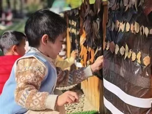 戶外場域童趣盎然,托小班幼兒在豆豆樂園拾葉賞秋、圍爐煮茶;中班孩子在創(chuàng)意小樹林開展樹葉拓印、沙池建構(gòu);大班幼兒走進豐宜農(nóng)場制作樹葉粘貼畫,在木工坊搭建“樹葉的帳篷”,各年齡段活動將秋意與童趣巧妙融合。共建單位代表與家委深入活動區(qū)域互動,歡聲笑語不斷,每一處互動都彰顯著“協(xié)同育人”的溫暖力量。