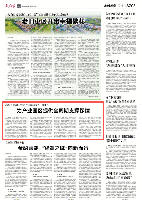 今年初,蘇州工業園區發布縱深推進“高效辦成一件事”工作方案,提出全年新增30項“高效辦成一件事”主題。作為產業集聚的空間載體,產業園區是推動區域經濟高質量發展的前沿陣地。蘇州工業園區將以“產業園區服務一件事”為抓手,全面提升產業園區運營管理水平,構建起“政園企”高效聯動的產業賦能新生態。