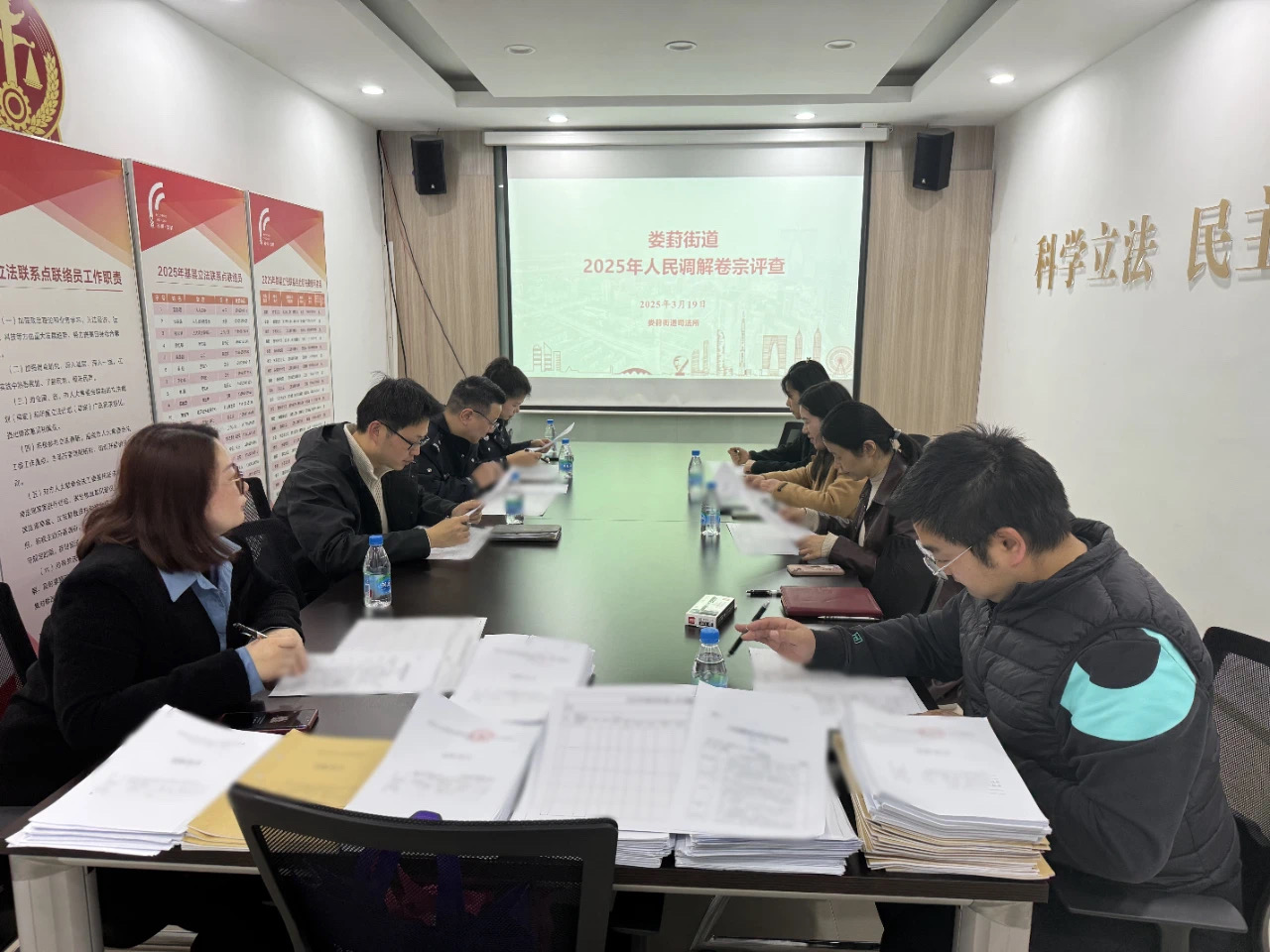“各位評審老師,請大家從程序合規性、文書規范性、回訪真實性、歸檔完整性等方面開展檢查,詳細查看調查記錄、調解記錄、協議內容等材料,發現問題請記錄到我們剛剛發的評查表上。”3月初,婁葑街道司法所組織開展人民調解卷宗評查活動,活動邀請區司法局資深調解員、街道法律顧問、派出所及社區調解員代表共同組建評查小組。評查組抽取了街道調委會、各社區調委會、街道駐派出所調解室等上一年度調處的70余件調解案件,對案件卷宗開展系統評查。“此次評查下來,案卷質量整體良好,但是也存在一些普遍問題,如協議書編號不規范、申請人一方為單位的,沒有注明法定代表人信息,接下來我們要整合匯總評查結果,反饋到各調解組織,在今后的調解過程中及時糾正。”評查結束后,司法所負責人鮑微對調解卷宗的整體情況進行了總結,并提出了下一步工作方案。后續,司法所將建立調解卷宗定期評查機制,通過全面檢查調解卷宗了解調解工作的規范性、合法性和有效性,以提升調解案件的質量和調解工作公信力。