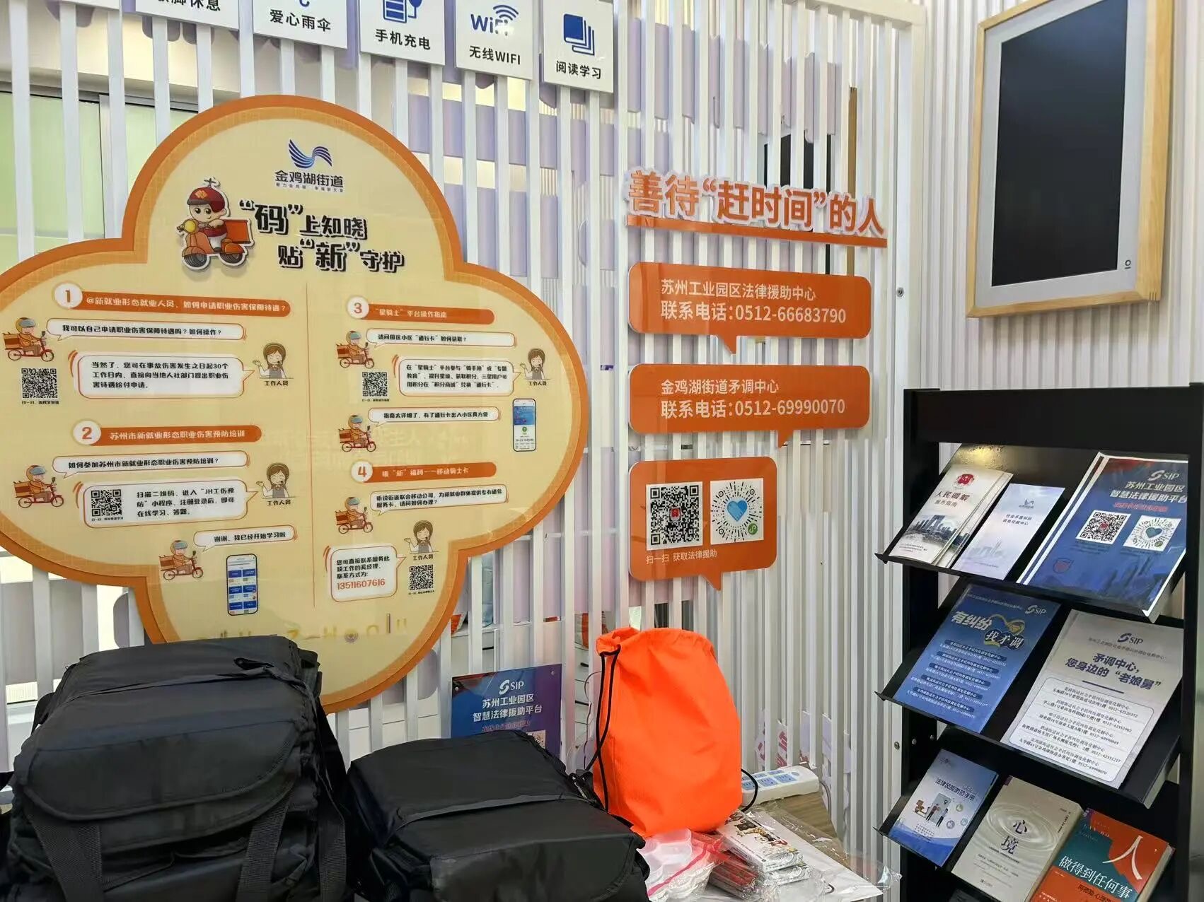 街道以需求為導向,推動普法從“單向”向“雙向”轉型。結合本年度農民工學法活動周、民法典宣傳月、安全生產月、暑期送清涼等重要節點,發動社區開展集中普法宣傳6批次,累計發放普法資料2000余份。通過微信群、公眾號等線上渠道,推送街道自制《就業形態勞動者權益保護普法手冊》、調解宣傳案例等實用信息,不斷豐富學法途徑。同時,鼓勵騎手化身“流動普法員”,通過在外賣箱上貼法治標語等形式,營造“流動”普法氛圍。此外,依托“城市客廳”及太平金融大廈“星”騎士加油站等暖“新”驛站增設“學法圖書角”,擺放《人民調解服務指南》《外賣行業法律風險防范手冊》等材料,供就業群體在工作休息之余隨手翻閱、隨時取用。