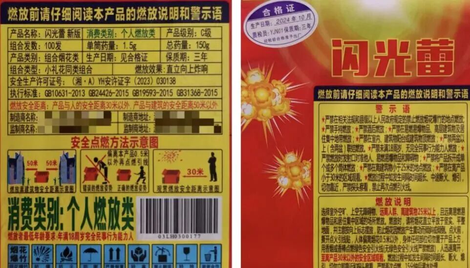 明確產品類別:煙花爆竹分為個人燃放類和專業燃放類,普通消費者只能選購“個人燃放類”字樣的產品。若標示為“專業燃放類”產品,需要專業燃放人員才能燃放。