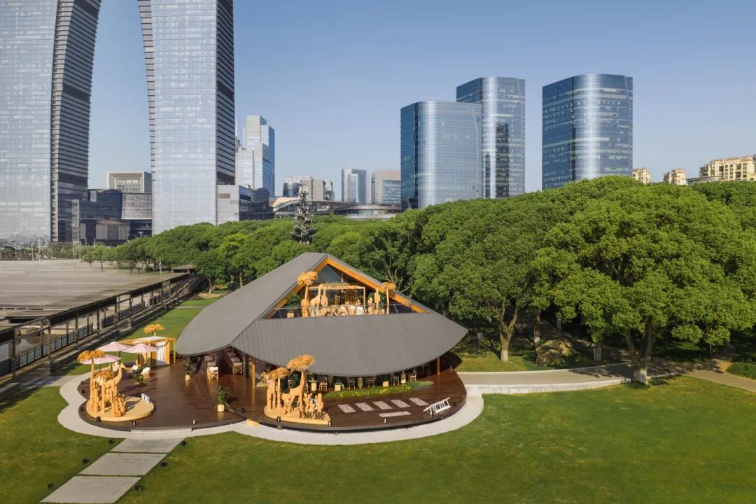 來到掩映在綠化中的金雞驛11,其以竹飾面漸變曲面呼應周邊雕塑,將自然野趣與高端體驗巧妙融合。作為戶外露營主題驛站,這里提供裝備租賃、探險咨詢與24小時補給,可滿足從新手到資深玩家的多樣需求。國際品牌也偏愛這片自然空間,“為愛奔馳”梅賽德斯-奔馳私享薈曾在此舉辦,參與者在享受精美茶歇的同時聆聽專業講解,高端體驗與露營氛圍巧妙融合,帶來獨特的輕奢體驗。