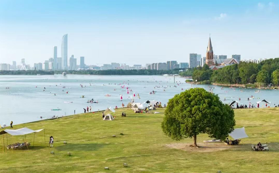 此外,在獨墅湖畔,靜謐藝術與科教氛圍共筑城市“慢空間”,為市民游客提供了另一種休閑選擇。白鷺園、獨墅湖教堂、月亮灣等景點構成獨特風景線,成為市民“微度假”的熱門選擇;草坪露營、湖畔騎行、水上槳板等綠色休閑方式廣受歡迎,吸引了眾多家庭前來享受假日的寧靜時光。