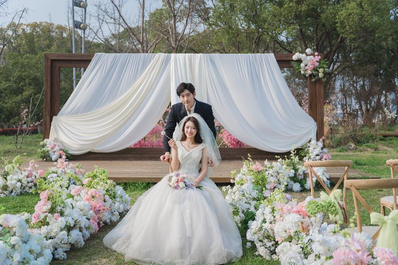 金雞湖中央,桃花島千株花樹次第綻放。“桃之夭夭,灼灼其華”的熱烈恰似甜蜜浪漫的極致張揚。花影浮動的草坪上,以湖光水色為背景,春日青蔥為底色,簇簇繁花打造花香載途的浪漫氛圍,引領一對對新人翻開人生新的篇章。