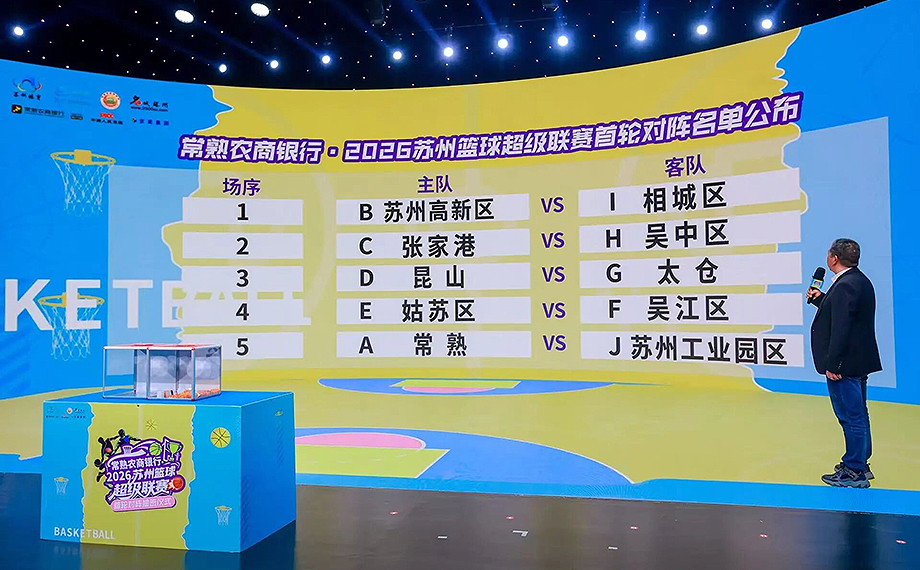 發布會上,首輪對陣抽簽正式揭曉,園區隊將迎戰主場常熟隊。此外,蘇州高新區隊將迎戰相城區隊、張家港隊將迎戰吳中區隊、昆山隊將迎戰太倉隊、姑蘇區隊將迎戰吳江區隊。