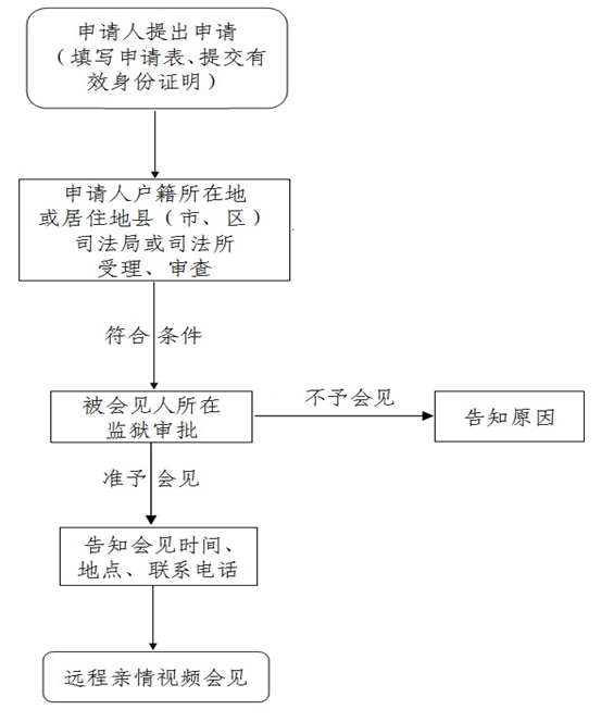 第八條:司法局收到親屬、監護人遠程幫教會見的預約申請后,應當認真核實會見人身份,符合遠程幫教會見條件的應當在兩個工作日內將預約申請通過遠程幫教會見管理系統轉送被會見人所在的監獄。監獄收到司法局審核后的預約申請后,應當在三個工作日內作出準予或不予會見的決定。準予會見的,應當明確告知司法局會見人的人數及姓名、會見時間、地點安排等。司法局收到監獄答復后,應當根據監獄確定的會見日期和時間,及時通知會見人前來會見,未批準的,應向會見人反饋原因。(一)被會見的在押服刑人員不屬于被暫停會見、禁止會見的情形;(二)在押服刑人員親屬、監護人符合遠程幫教會見的條件;(三)一般每月安排一次,每次不超過三人。當月已到監獄會見,則不安排視頻會見,特殊情況除外。(四)會見時間為工作日,一般安排在監區會見日當天進行,特殊情況下經監獄批準也可安排非會見日會見。每次會見時間不超過30分鐘。(五)會見申請批準后,應在約定的會見時間進行會見;會見人員在會見現場服從司法局、監獄工作人員的管理。