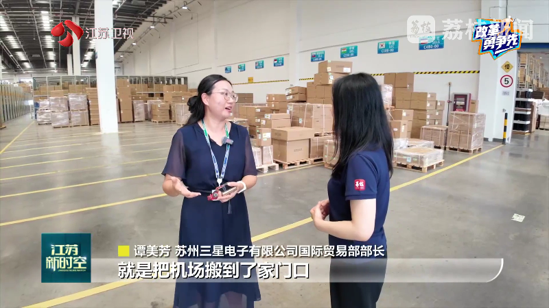 蘇州三星電子有限公司國際貿(mào)易部部長(zhǎng)譚美芳說:“就是把機(jī)場(chǎng)搬到了家門口,對(duì)于企業(yè)來講,國際空運(yùn)享受到了國內(nèi)快遞這樣快速便捷的服務(wù)。”