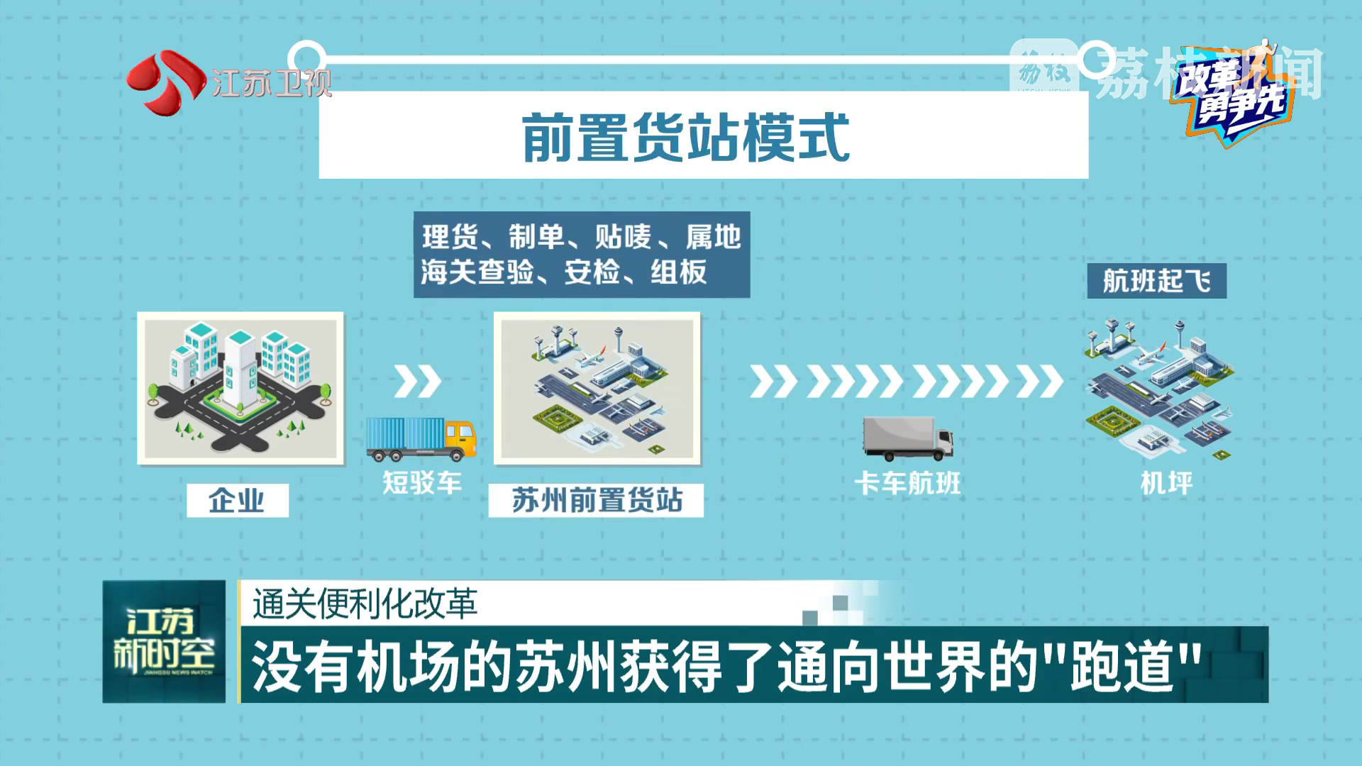 日前,江蘇衛(wèi)視欄目《江蘇新時(shí)空》推出系列報(bào)道《改革勇爭(zhēng)先》,聚焦全省各地深化改革的鏗鏘足跡和鮮活實(shí)踐,其中一站即是蘇州自貿(mào)片區(qū)的上海機(jī)場(chǎng)-蘇州前置貨站。
