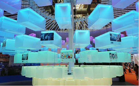The “Digital Sand Clock” composed of over 200 acrylic boxes were stunning. Each of the boxes showed an intellectual property of a digital culture enterprise in SIP. The “Digital Sand Clock”, the changing colors of lights and the inverted images on the ground made the visitors feel like they were traveling in time.