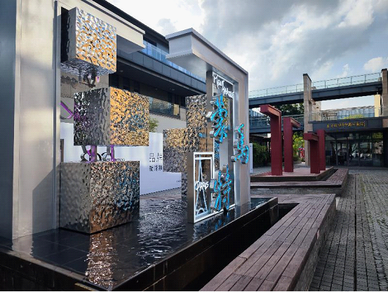 At the Ligongdi Cultural and Creative Block, a metallic sculpture shines like glass under the sunlight, shimmering in harmony with the rippling water at its foot. It has attracted many people to pause and take photos.