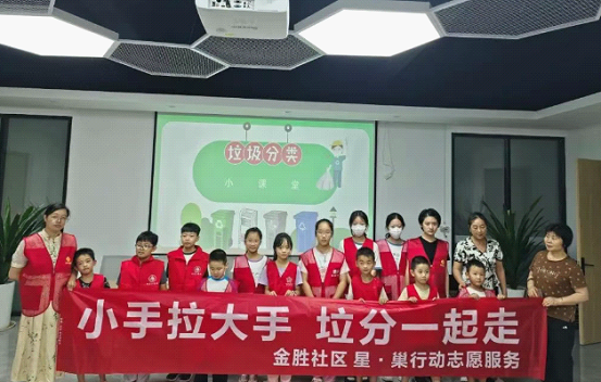 In communities, community workers and volunteers served at garbage sheds to help residents sort waste, and carried out door-to-door campaigns to call on residents to sort household waste for environmental protection and resource conservation.