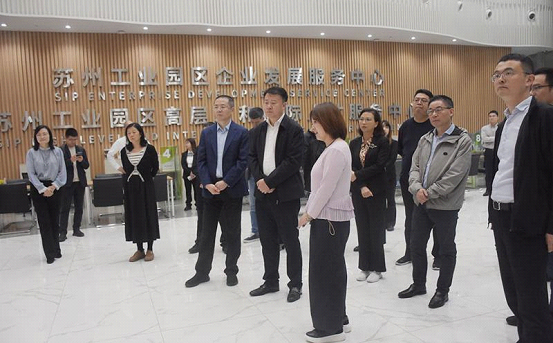 At SIP Enterprise Development Service Center, the delegation listened to the introduction to its comprehensive business services, and asked questions concerning details about these services.