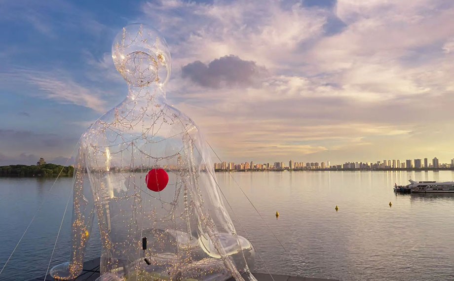 Each work is uniquely crafted, forming a coherent artistic narrative with the modern waterfront landscape of Jinji Lake.