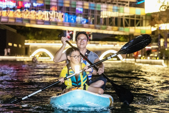 As dusk falls, the Central (Zhongyang) River in SIP is sparkling with fun! Since August 30, paddleboarding has become a trendy night activity for many people.