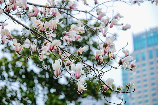 Beside the Suzhou Culture and Arts Centre, the Yulan magnolia blossoms on the branches are pure white like snow, or light pink like morning glow. Set against the beautiful architecture around and the clear blue sky, their petals stretch gracefully, exuding an elegant style. Other places like Baitang Arboretum and Egret Garden also provide amazing scenes of Yulan.
