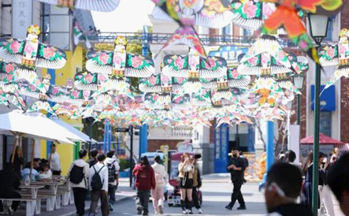 Centered on Cao’s Kite, a national intangible cultural heritage item, an exhibition is underway, showcasing about 100 classic kites. Moreover, Miao Bogang, an inheritor of the traditional handicraft of making Cao’s Kite, gives visitors introductions to the craft and its cultural background on site.