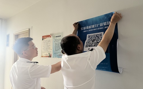 結合專項行動,大隊密集開展“薪易到”維權平臺宣傳推廣,上門發放、張貼平臺二維碼宣傳海報,暢通勞動者訴求反映渠道,“碼上”維權降低成本,確保訴求能夠“一鍵直達”、高效受理,為勞動者按下了權益保護“快捷鍵”。
