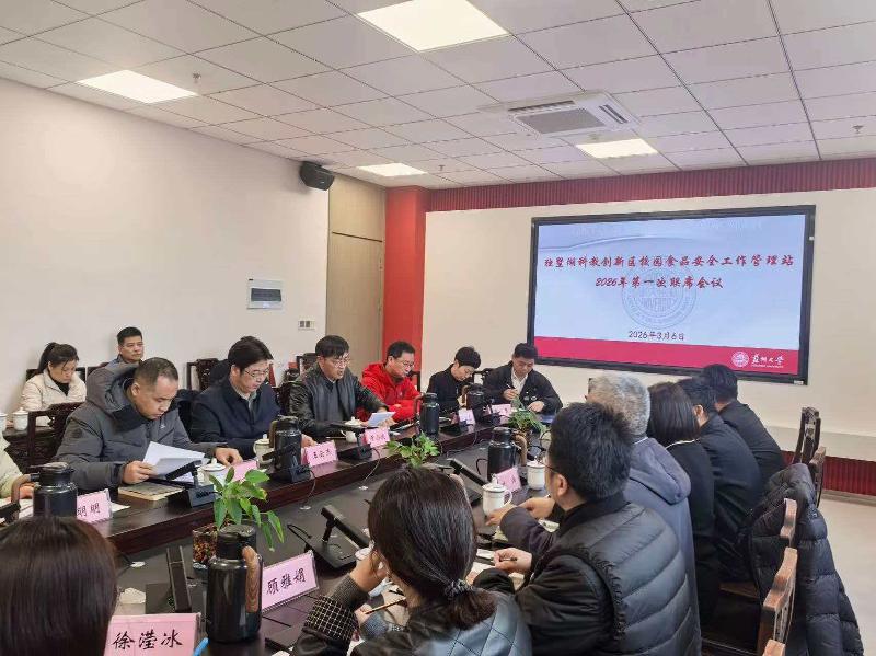 為深化校園食品安全治理,健全政校協同機制,近日,蘇州工業園區獨墅湖科教創新區校園食品安全工作管理站召開2026年第一次聯席會議。蘇州大學分管副校長、園區市場監管局分管領導以及各高校成員單位參加會議。
