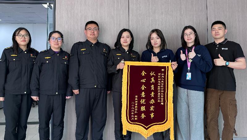 近日,某企業(yè)將一面印有“認真負責辦實事,全心全意優(yōu)服務(wù)”字樣的錦旗送到蘇州工業(yè)園區(qū)市場監(jiān)督管理局高端制造與國際貿(mào)易區(qū)分局工作人員手中,對分局在辦理食品經(jīng)營許可服務(wù)過程中的耐心與專業(yè)指導表示感謝。一面錦旗,不僅是企業(yè)對工作人員服務(wù)態(tài)度與業(yè)務(wù)能力的肯定,也反映出分局在落實日常許可職能、規(guī)范服務(wù)流程方面取得的成效。