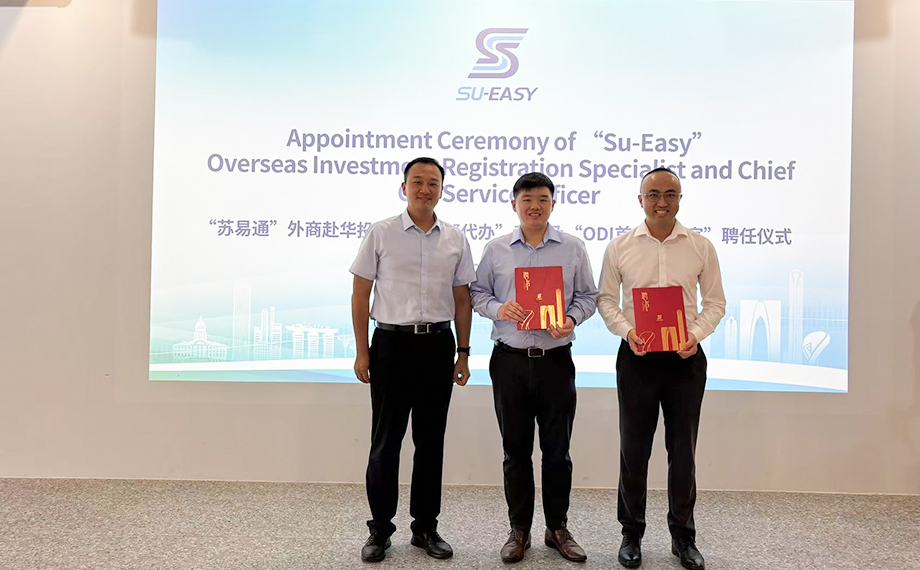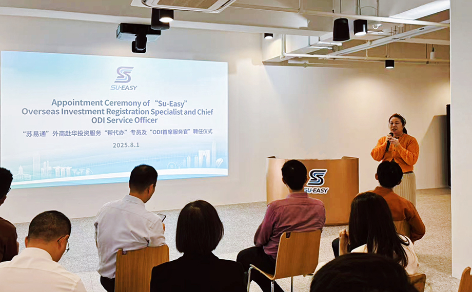 外商赴華投資設(shè)企如何獲得高效支撐?蘇州工業(yè)園區(qū)“蘇易通(Su-Easy)”跨境投資服務(wù)助力全球投資者“一鍵落戶”。近日,“蘇易通”首個(gè)境外幫代辦專窗在蘇州工業(yè)園區(qū)新加坡國際商務(wù)合作中心正式設(shè)立,首批“蘇易通”服務(wù)專員受聘上崗,將為兩地乃至更廣泛區(qū)域的投資者提供專業(yè)高效的全流程幫辦服務(wù),助力企業(yè)跨境投資業(yè)務(wù)高質(zhì)量發(fā)展。