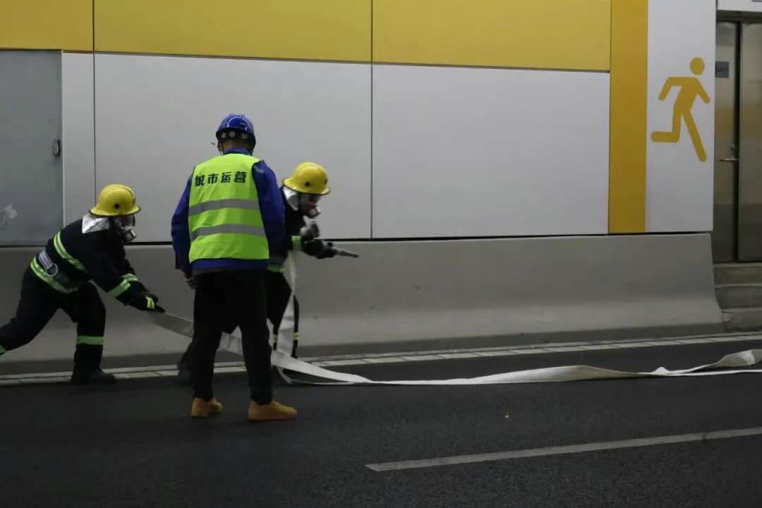 市政服務集團隧道管理中心通過監控系統確認險情后,立即啟動應急機制,同步完成火警上報、力量集結和警示廣播。應急保障隊伍60余人聞令而動,兵分三路展開救援:疏散組引導被困人員沿應急通道安全撤離;引導組在隧道出入口實施交通疏導,開辟救援生命通道;救援組開展前期消防處置,有效控制火勢蔓延。金雞湖消防大隊接警后迅速抵達現場,專業開展水源接管、火場降溫與明火撲救作業。交警部門同步實施隧道內外交通管制,保障救援通道高效暢通。