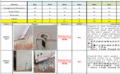 嘉士凱堅信安全是企業最大的效益,事故是最大的成本,始終把安全工作擺在最突出的位置。在隱患整改流程管控方面,總經理將每周例會的第一項議程列為安全隱患整改情況匯報,針對安全隱患清單內的已閉環隱患,公司領導定期開展復查,而針對尚未整改隱患,總經理將在會上共同討論隱患成因及解決方案,及時跟進,直至隱患閉環,確保清單內隱患百分百關閉。