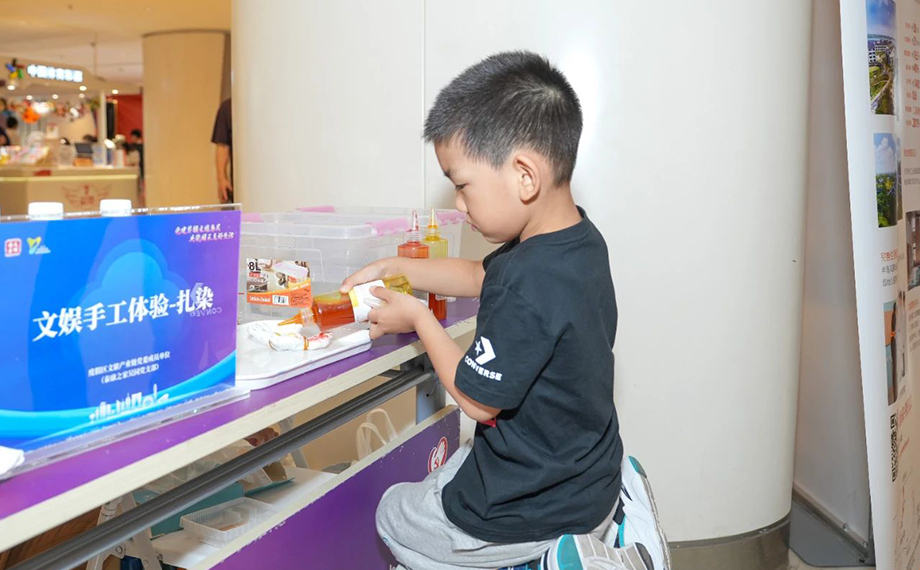 扎染是一項傳承千年的民間染色工藝。從圖案設計構思,到布料折疊方式,再到浸染、拆線與清洗等環節,泰康之家吳園的黨員志愿者細致地講解扎染步驟,并邀請市民們親自體驗,感受扎染的樂趣。