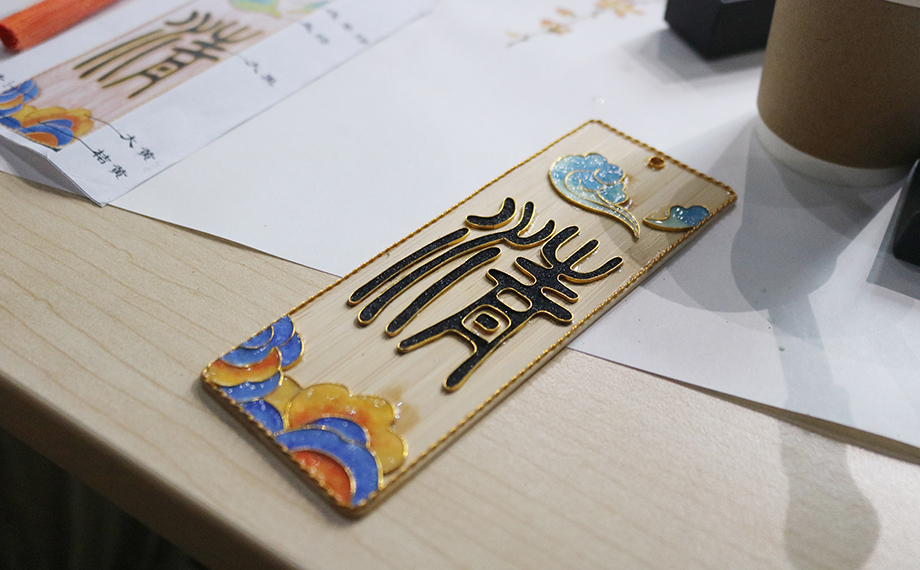 正是因?yàn)橐詼鬄榇淼牧汲純A力為民,社會(huì)才能進(jìn)步、時(shí)局才能穩(wěn)固,這也為乾隆時(shí)期景泰藍(lán)的復(fù)興創(chuàng)造了條件。景泰藍(lán),即掐絲琺瑯工藝,是中國的著名特種金屬工藝品類之一。在隨后的文化體驗(yàn)課環(huán)節(jié),大家興致勃勃地在老師的講解和幫助下參與到景泰藍(lán)手工技藝的體驗(yàn)活動(dòng)中,以金絲作胎,填充色釉,制作出屬于自己的景泰藍(lán)工藝蓮花杯墊、書簽、小鏡,用蓮心現(xiàn)廉韻,感受傳統(tǒng)文化魅力。