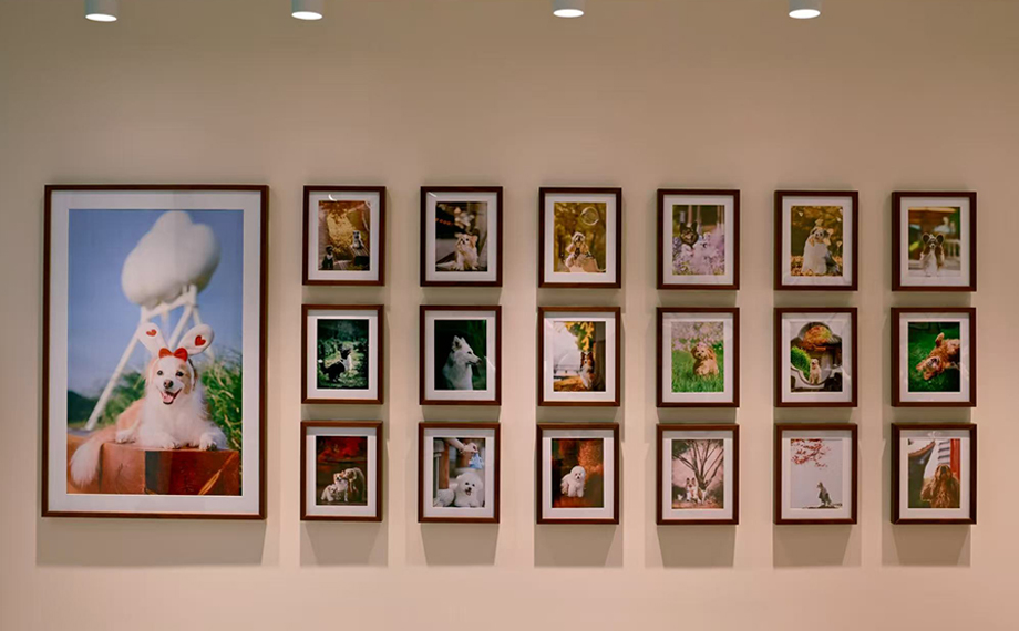 不同于“初二家”的萌趣溫馨,隔壁的“芒果寵物攝影”則是滿滿的文藝范兒和“ins風”,店內(nèi)的墻上掛滿了毛孩子們在各地撒歡的藝術(shù)寫真,內(nèi)景棚也根據(jù)不同主題布置得十分精美。“我們的攝影師擁有豐富的寵物拍攝經(jīng)驗,并且會基于每只寵物的習性進行引導拍攝。”品牌主理人蝦仁認為,家長與毛孩子相處的每一個瞬間都是值得被記錄的幸福時刻:“我們想用影像記錄下毛孩子們的美好。”