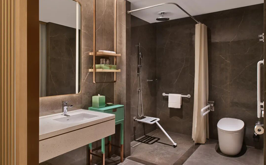酒店擁有277間雅致客房、套房及6套獨立別墅。客房以清新淡雅的原木色調,呈現簡約雅致的現代美學風格,其間點綴的太湖石裝飾畫、中式屏風等將蘇州園林意境巧妙融入,凸顯東方逸趣。客房自帶陽臺,配備65寸高清電視支持無線投屏功能,并配有輕智能馬桶、無線充電藍牙音響等智能化設備及高速無線網絡。房內布置提取了太湖石、大閘蟹等蘇式元素進行設計,并臻選舒適床品與精致洗浴用品,讓旅途中的休憩倍添愜意。