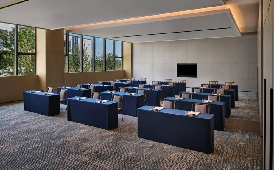 酒店配套2間餐廳及1間大堂吧,以“雅集”“閑游”的故事概念打造富有文化意趣的多元餐飲空間;同時配備超1500平方米的宴會空間,其中800平方米的無柱大宴會廳可靈活分隔為3個獨立空間,配備LED高清大屏及專業燈光音響系統,可舉辦大型會議、展覽和宴會。酒店還擁有多間多功能會議室,可進行靈活組合或分隔,全方位滿足不同規格的會務需求。