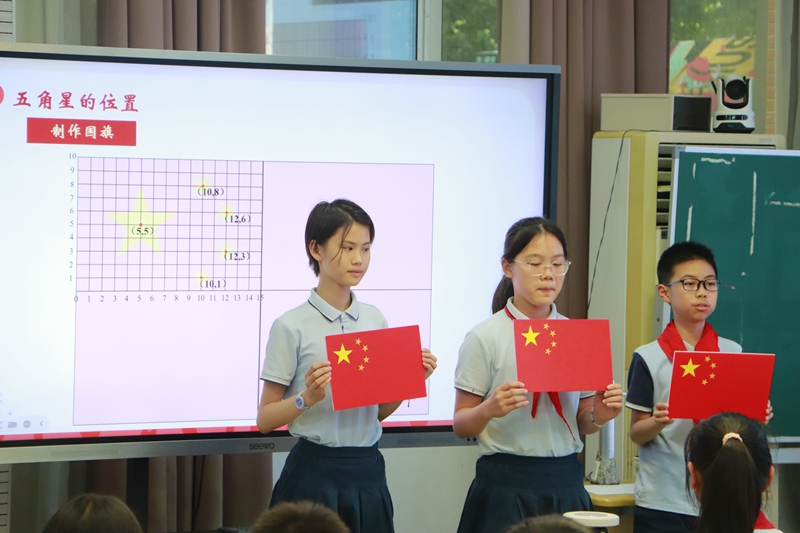 揚州市文峰小學陳姝君老師執教《數說“中國紅”》,將數學與美術學科相融合,以國旗設計為主任務,引導學生在“認識國旗-設計國旗-制作國旗”的實踐活動過程中,逐步培養學生的空間觀念、學科情感和家國情懷。