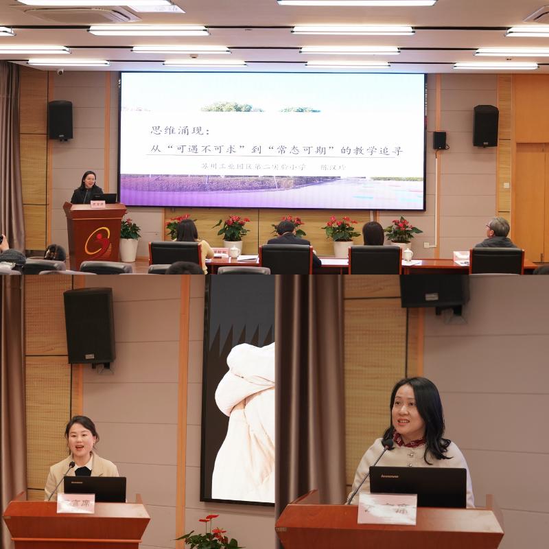 星洲小學(xué)校長(zhǎng)汪路霞以管理創(chuàng)新為主題,分享以“喚醒為先、共情為要、權(quán)責(zé)共擔(dān)”為核心的管理新理念,營(yíng)造和諧向上的校園生態(tài),構(gòu)建融洽共生的育人關(guān)系;第二實(shí)驗(yàn)小學(xué)書記陳漢珍聚焦“思維涌現(xiàn)型課堂”,系統(tǒng)介紹學(xué)校推動(dòng)優(yōu)質(zhì)課堂從“可遇不可求”走向“常態(tài)可期”的長(zhǎng)期探索,真正走出以課堂提質(zhì)帶動(dòng)教師發(fā)展、以教師成長(zhǎng)賦能育人質(zhì)量的良性發(fā)展之路;教師發(fā)展中心綜合實(shí)踐研訓(xùn)員張嘉立足區(qū)域綜合學(xué)習(xí)的現(xiàn)實(shí)痛點(diǎn),提出從認(rèn)知、內(nèi)容、實(shí)施、支撐四個(gè)維度創(chuàng)新課程樣態(tài),以學(xué)習(xí)方式變革推動(dòng)學(xué)習(xí)經(jīng)驗(yàn)結(jié)構(gòu)化,提升學(xué)生綜合素養(yǎng)。