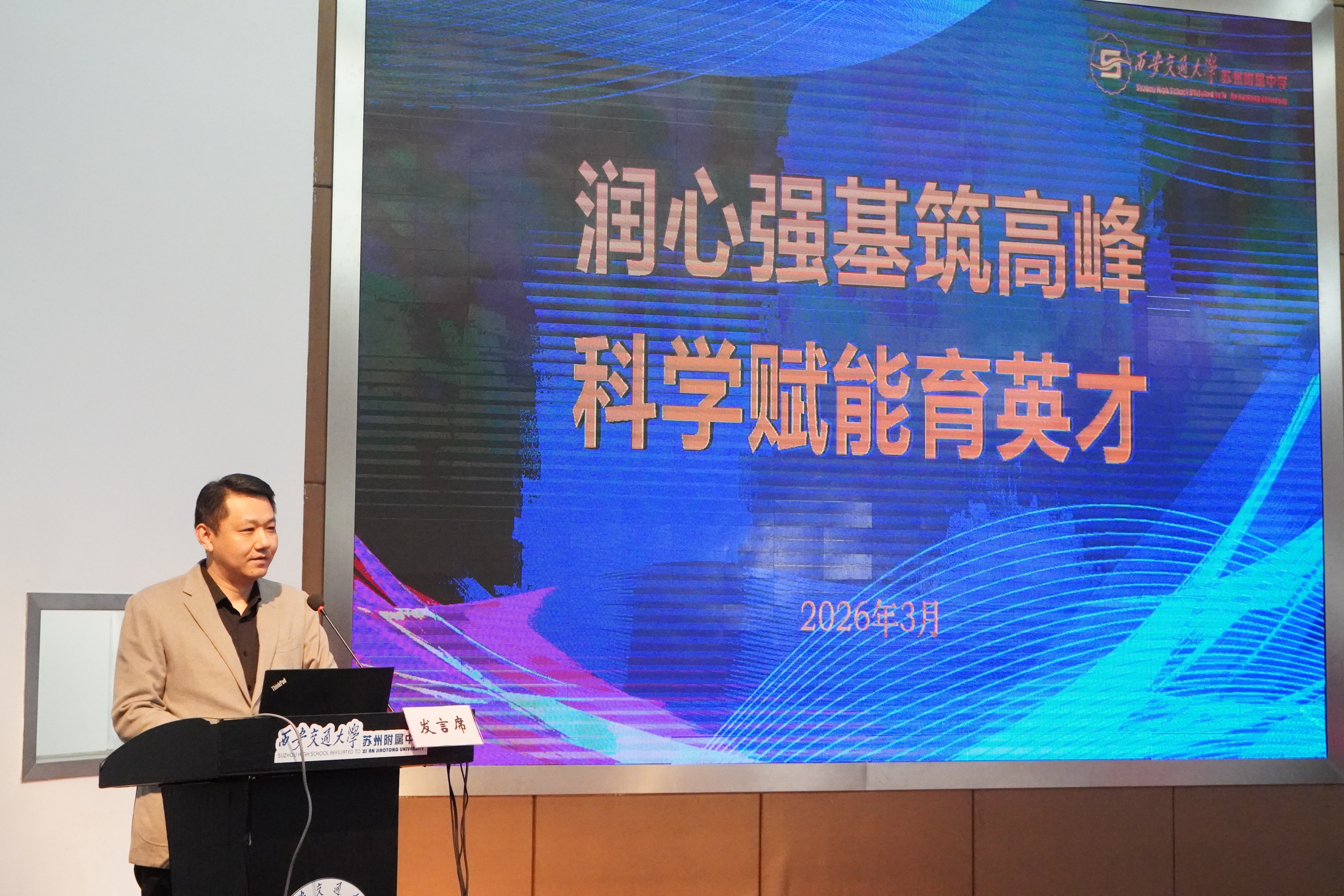 3月11日,2025-2026學年第二學期蘇州工業園區高中教學工作會議在西安交通大學蘇州附屬中學方洲路校區召開。會議圍繞“協同融合、新質育人”年度主題,聚焦課程教學改革與育人模式創新,部署新學期重點工作,致力于推動區域高中教育向著更高質量、更優生態邁進。會議由園區教育局基礎教育處處長楊原明主持。