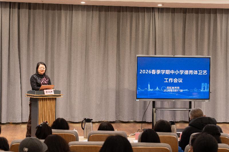 為全面落實立德樹人根本任務,牢固樹立“健康第一”教育理念,扎實推進新學期學校德育體衛藝工作,3月11日下午,2026年春季學期園區中小學德育體衛藝工作會議在園區青少年活動中心青劍湖分中心召開。園區教育局副局長劉海燕、政宣處副處長蔡羅蕊、相關學科教研員、各中小學德育體衛藝分管校長、主任及學生發展指導中心負責人參加會議。