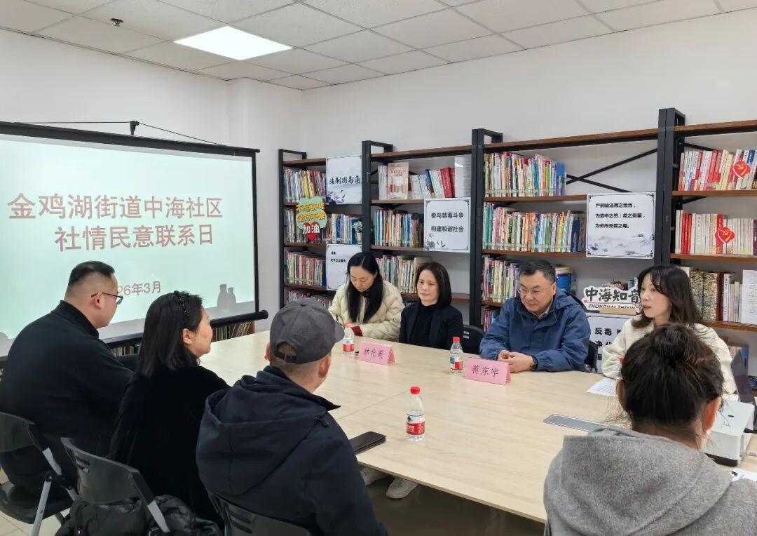為充分發(fā)揮人大代表助發(fā)展、惠民生、聚共識(shí)、促和諧作用,3月13日,在金雞湖街道中海社區(qū)“人大代表聯(lián)系點(diǎn)”開展“社情民意聯(lián)系日”活動(dòng)。金雞湖街道人大工委主任蔣東宇,區(qū)人大代表林化美、街道議政代表繆杰參加活動(dòng),與社區(qū)居民代表零距離溝通交流。